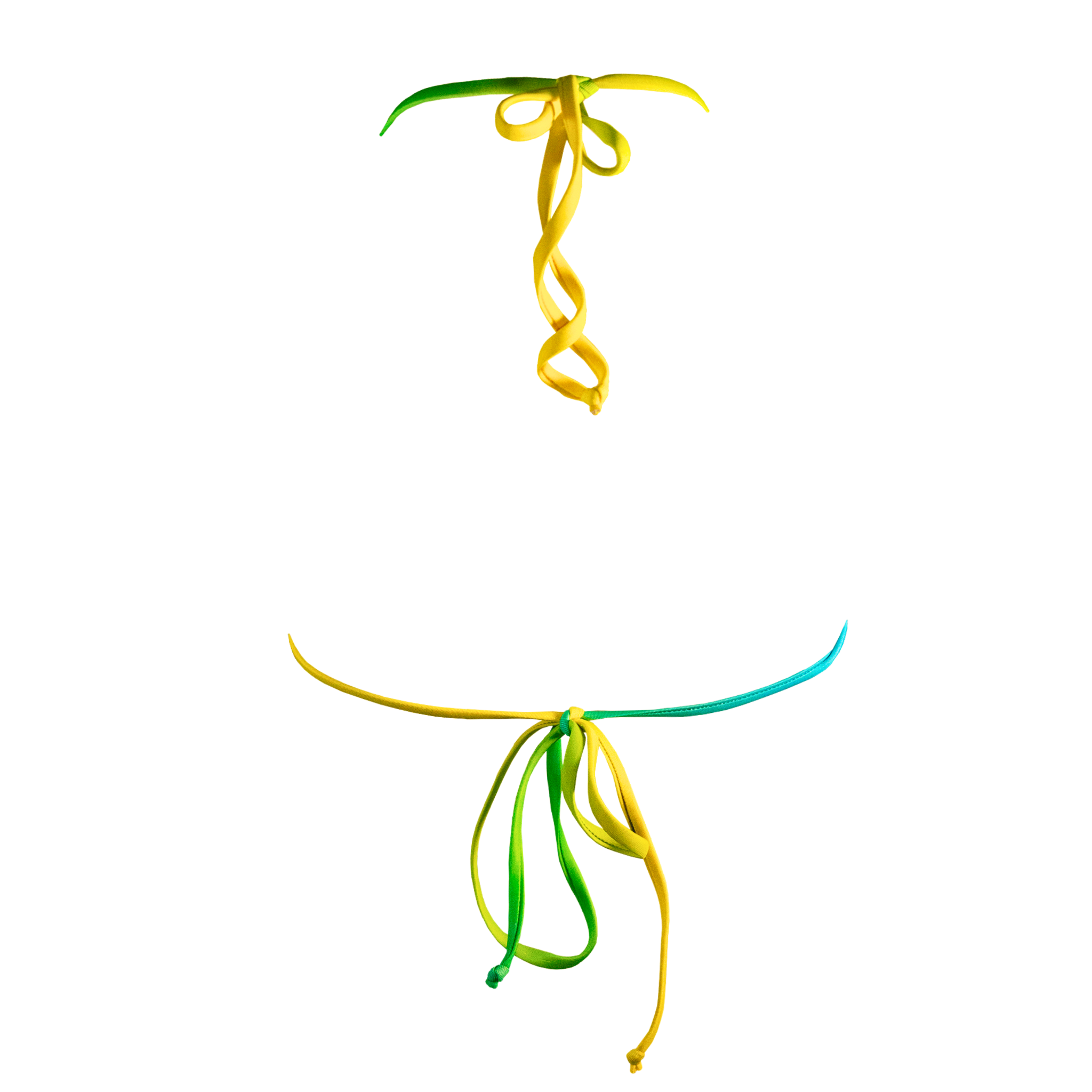 Part of our Sweet Temptation collection, it offers a fun, playful feel. Featuring an eclectic ombre mix of tropical greens, yellow daisies, and blue skies, this vibrant print evokes the beauty of summer. Whether you are in Fiji or the Bahamas, this bikini is the perfect getaway outfit.