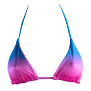 The Amber Triangle Bikini Top in Malibu Print captures the vibrant spirit of the Malibu Beach Barbie lifestyle with its dreamy pink and blue hues that are just way too cute and hard to look away from