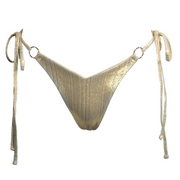 Are you ready to take your beach style game up a notch? Our Bria V-Cut Brazilian Bikini Bottom is just what you need to make an unforgettable statement. Show off your curves with this skimpy and alluring piece, designed for effortless comfort and enduring beauty. Get ready to feel like a true goddess in white gold fine ribbed fabric that hugs your body just right. The daring V-cut front detail and gold O-ring accents in the front and back will give you a sexy silhouette, perfect for flaunting your beautiful figure with confidence. Make heads turn and be the centre of attention with our Bria Brazilian Bikini Bottom. Feel like an Aphrodite as you make waves at the beach!