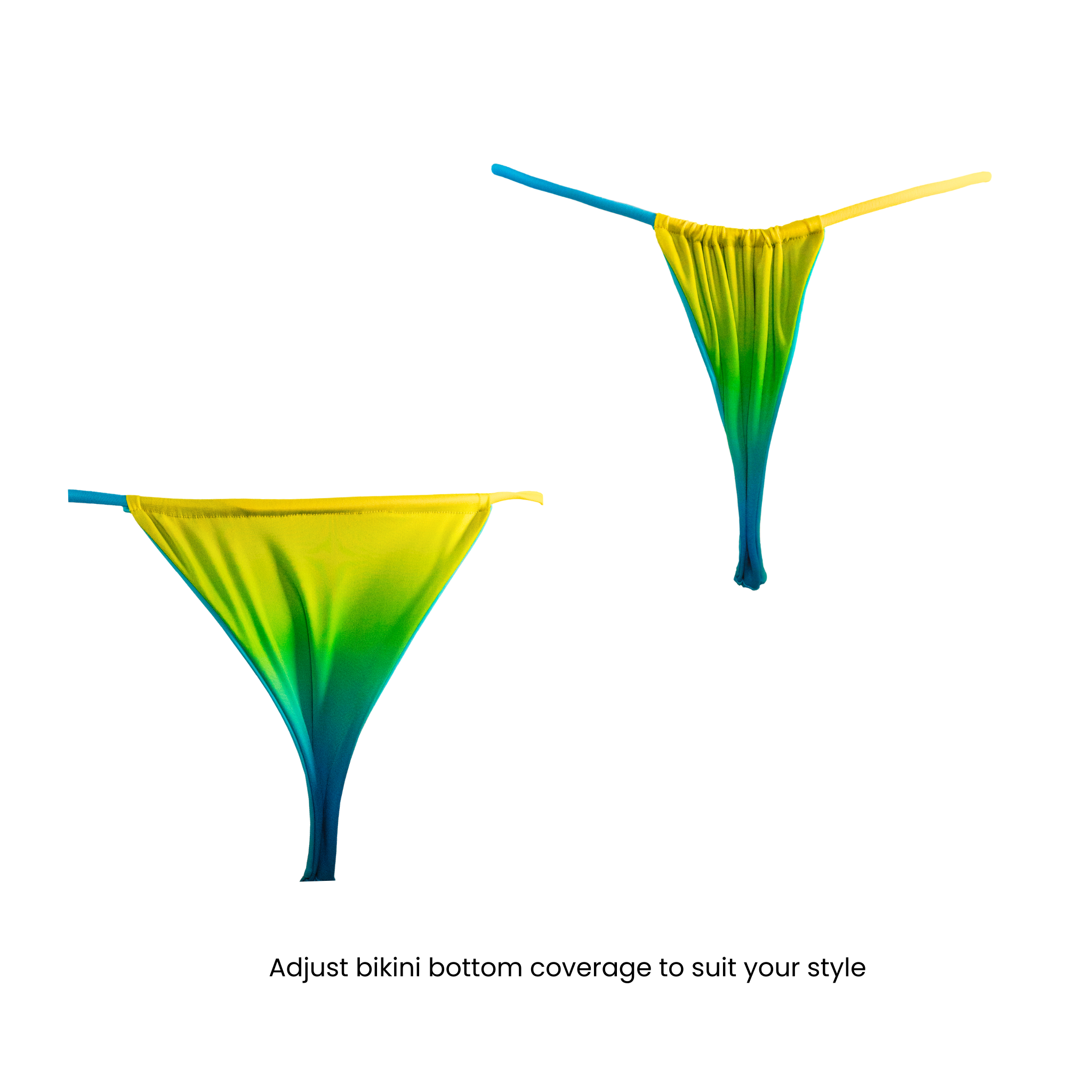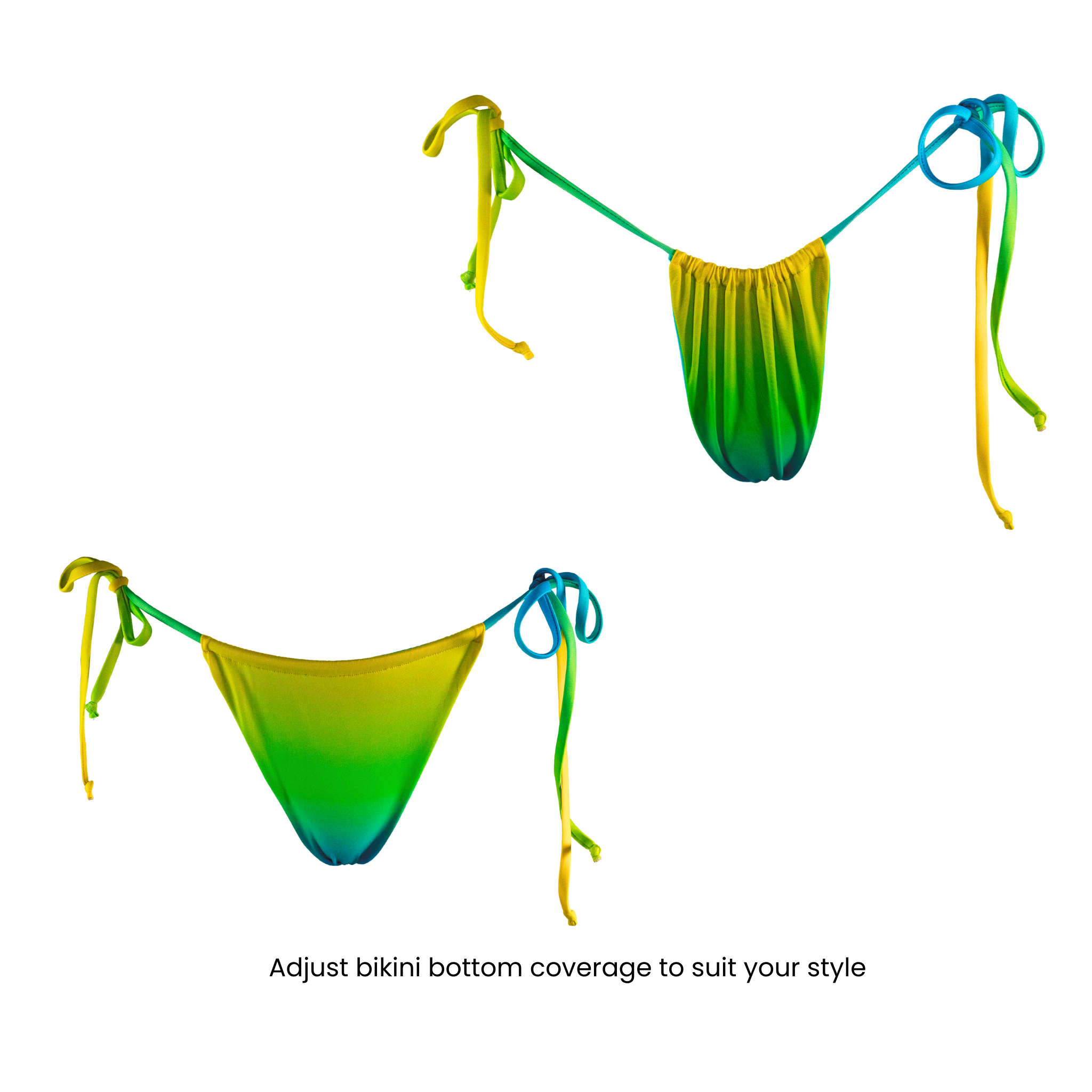 - Slide bikini bottom, which can be adjusted and worn to suit your taste and occasion.
