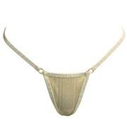 Expertly designed with luminous white gold fine ribbed fabric and seamless stitching, this ah-mazing design offers an unforgettable look that will truly flatter your figure. Rocking a daring G-string coverage and shiny gold O-ring accents in the front and back, you'll be feeling like an oh-so-goddess as you slip into this daring piece