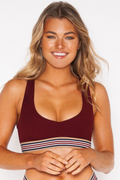 This ribbed burgundy racerback bikini top features a simple yet very sexy plunging neckline that not only looks great but stays put. An excellent bikini top choice for someone who does not back out of challenges and loves a bit of competition. It is a bikini designed to hold its place no matter the activity. The ribbed burgundy bikini top offers the best of both worlds.