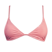 Our Layla Triangle Bikini Top in Pastel Pink is perfect for daring rebels who crave attention. Its luxurious pastel pink latex look fabric has a timeless, minimalist style, with classic triangles, double-lined cups, and adjustable straps with a metal clasp at the back.  Four loophole fastening completes the alluring aesthetic. Look like a snack at the beach in this irresistible look,
