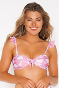 The flirty floral print on the pleated bandeau is a brilliant choice if you want to make a bold statement on your summer vacation. With it's lush dahlia and floral prints on the pleated bandeau, the bikini makes a perfect Australian swimwear for beach and pool loving girls.