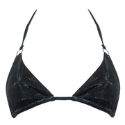 Make a splash this summer with the Sasha Black Triangle Bikini Top. With its sleek jet-black ribbed fabric and golden o-ring details, you're sure to look every bit the goddess on your next beachside getaway. Our seductively skimpy bikini top is designed to accentuate all of your curves – so go ahead and show off your figure while turning the heads of everyone around you! Pair this daring look with our matching V-Cut Tie-Side Brazilian Bikni Bottom for a truly showstopping ensemble – and get ready to heat up the beach! No matter what your style, a confidence-boosting swimsuit is always in season. So go ahead: unleash your inner siren and be the envy they talk about.