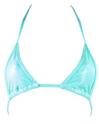 Its barely-there micro-cut is perfect for the sassy rebel in you. You can adjust this slide triangle bikini top by adjusting the halter tie top and elastic under bust, tailored specifically for your comfort level. The shimmering fabric will make you look like an untamed beauty of the sea as it catches different lights. Men will instantly fall head over heels when they see you wearing this micro bikini top that looks so good on your body!