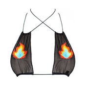 - Featuring an embroidered applique Fire applique that covers just enough nips ;)