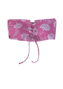 The gorgeous lace up detail allows you to adjust your cleavage area to your liking. It creates an illusion of a bigger rounder breasts. Lush dahlia and fern artwork printed on the soft pink fabric for added details. whether you have light /fair skin or beautiful bronzed tan, this color will be beautiful on anyone who wears it. The bandeau bikini top is double lined to make it more comfortable. It is also designed with bones on the side to keep it's shape.
